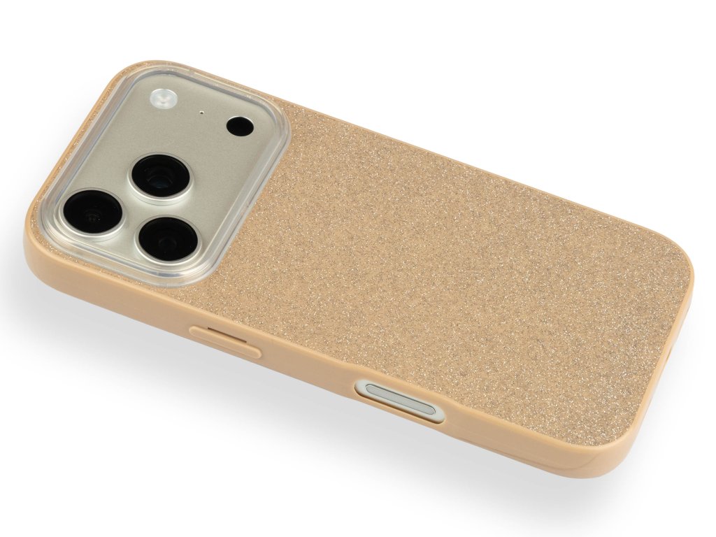 Tento stylový kapučíno tvrzený kryt s jemným třpytem pro iPhone 17 Pro Max spojuje odolnou konstrukci s luxusním vzhledem.