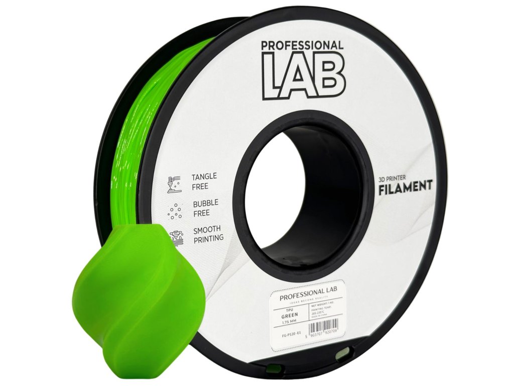 Prof. Lab TPU zelená 1,75 mm 1 kg – Flexibilita pro náročné průmyslové i hobby použití
